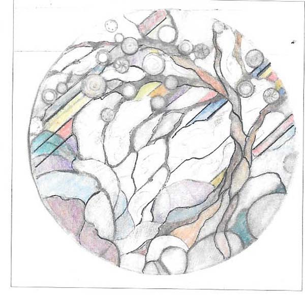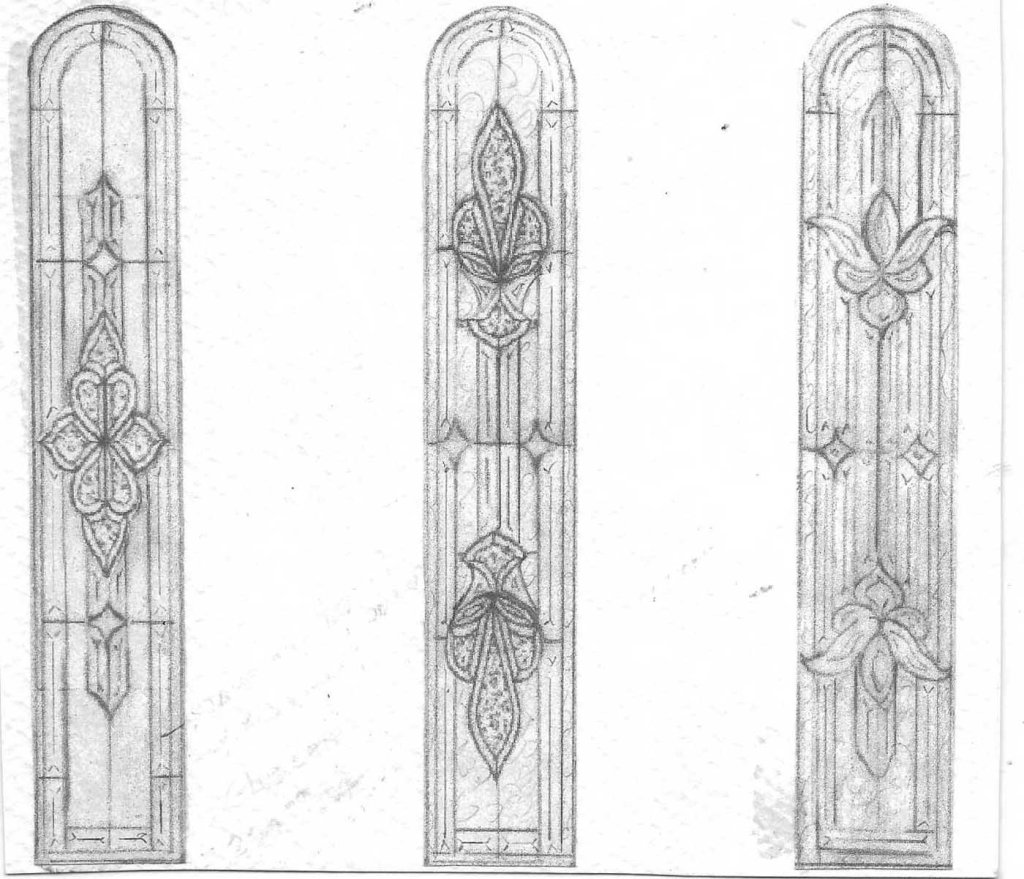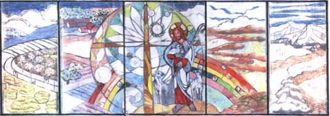 A professional glass artist needs to be skilled in visual communication, working with color to set mood, character and spirit. These preliminary sketches were the ground work for several stained glass projects. When they were translated into finished glass works, the special alliance with light and color created a beautiful environmental translation.