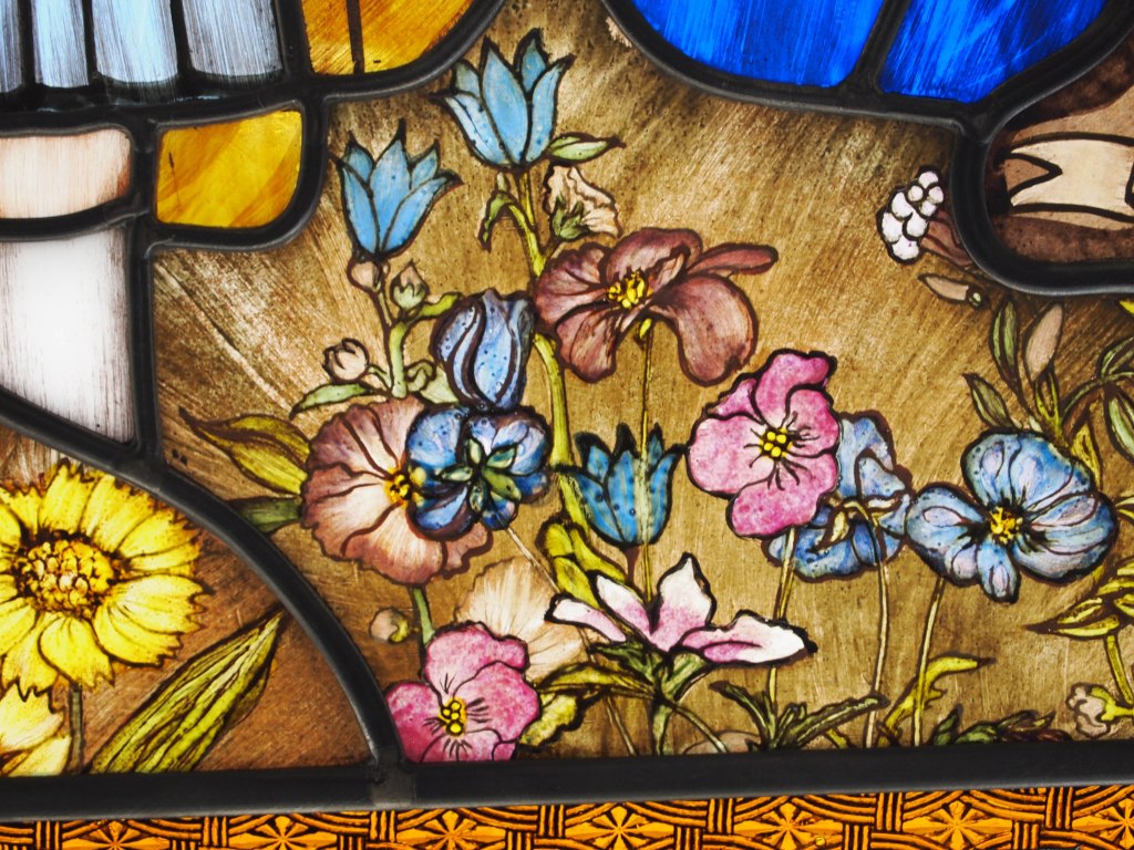 Upon approval of the design and proposed materials, production ensues. The building of the panel then follows the same basic steps as windows produced hundreds of years prior. A full scale cartoon is developed, then individual glass pieces are cut and joined together in a lead matrix which is soldered where joints meet. Next the window is cemented, cleaned and reinforced before installation in the home – providing years of enjoyment.